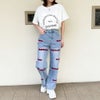 フロントのサークル刺しゅうが可愛いシンプルTシャツが登場★ドロップショルダーに、程よくゆとりのあるサイズバランスがリラックスムードを演出♪腰回りが隠れる長めの着丈で、コーディネートのアレンジも広がるアイテムです☆
