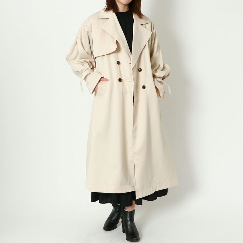 袖のベルトを締めれば、キャンディスリーブにアレンジ出来るボリューム袖トレンチコートが登場★ボリューム感で遊べる袖のデザインがポイント♪バックは深めのタックとヨークで後ろ姿を美しく魅せるバックシャンな仕上がり◎旬なビッグシルエットは羽織るだけでトレンドライクな装いに☆