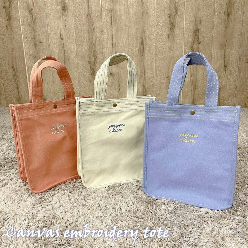 型崩れしにくい&マチ広めで収納力ピカイチのキャンバス刺しゅうトートが登場★今どきファッションのお手本のような韓国風のバランスのいいミニトート♪サイドポケット、内ポケット豊富で用途別に収納しやすく取り出しやすい◎お洒落に日記帳や筆箱、飲み物などの厚みのあるものが入れられる深さが一押しのアイテムです☆
