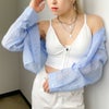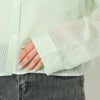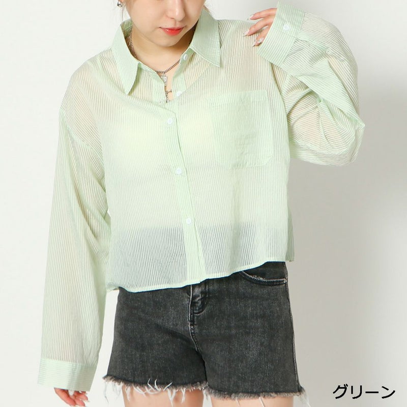 さらっと羽織るだけでトレンドスタイルが完成するシアーショート丈ストライプシャツが登場★全体のシルエットをスッキリ見せるショート丈♪前を閉めて着ても、羽織りとして着てもオシャレなアイテム◎暑いシーズンは冷房対策の羽織に、レイヤード次第で春から秋までロングシーズンで着用いただけます☆