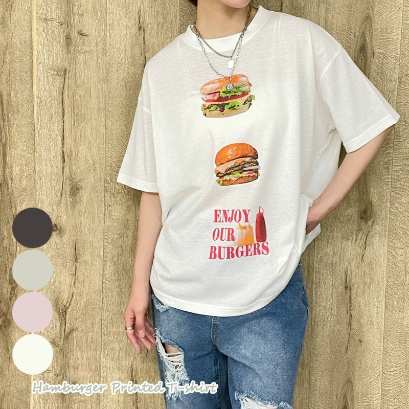 Tシャツ トップス ハンバーガー プリント ロゴ 春 夏 2320218