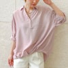 涼やかな素材感と上品なパール使いが魅力なスキッパーブラウスが登場★程良いスキッパーデザインが、ネックラインをすっきりとヘルシーに見せてくれる1着♪フロント部分はインしているようなデザインでこなれ感ある着こなしに◎スカートにウエストインですっきり合わせたり、シンプルなデニムやテーパード、スラックスパンツで合わせてハンサムスタイルも楽しめます☆