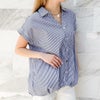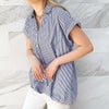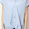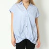 バックレースリボンが目を引く多種ボタンシャツが登場★柔らかい素材は着心地も良く、デザイン違いのボタンが華やかで可愛いポイントに♪フレンチスリーブで仕立てることで女性らしく魅せてくれる1枚◎フロントの裾にタックを施し、前だけインしたようなデザインなのでテクニック要らずでスタイリングをオシャレに演出します☆