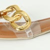 金具×クリアがアクセントになった、クラシカルなデザインのサンダル★アッパーにチェーンモチーフを飾ってぐっと雰囲気を高めた上品なアイテム♪スクエアトゥが、即座に高感度な足元へアップデート◎クリアアッパーは、大人な女性を演出できるので、トレンドのフレアスカートと合わせて上品なコーディネートにしたりデニムやスキニーパンツと合わせてカジュアルにも合わせていただけます☆