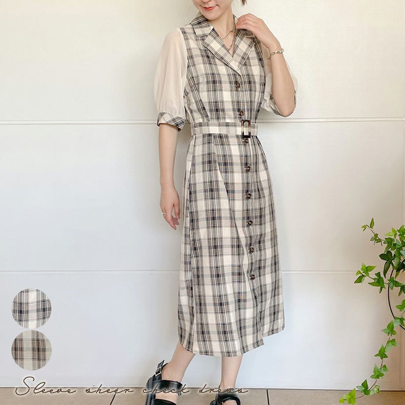 ワンピース オールインワン シアー チェック 春 夏 秋 2321824