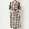 袖がシアーになった異素材ドッキングの秋らしいカラーのチェックワンピースが登場★ウエストベルトできれいなXラインが実現♪シアー袖はパフスリーブで、二の腕もカバー◎程よいAラインなので、気になる下半身の体型も拾わず1枚で女性らしさも兼ね備えたラクチンにおしゃれになれるワンピースです☆