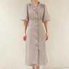 バルーンスリーブ部分をシアーな生地で切り替えたワンピースが登場★深めのVネックから覗くデコルテが大人可愛いく一枚でさらっと着やすいデザインに♪フロントに並べたボタンがレトロな印象を与える今年らしい一着◎パフスリーブにAラインスカートが品のあるアイテムです☆