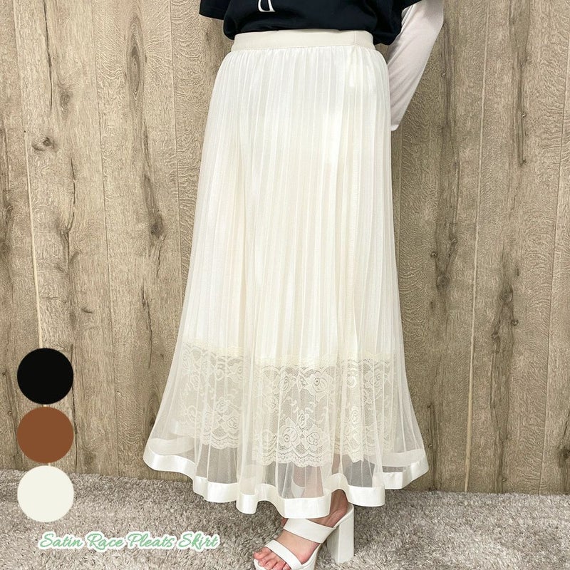 スカート ボトム プリーツ サテン レース 春 夏 秋2322680