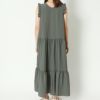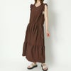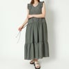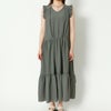 爽やかなムードのある楊柳シフォンで仕立てたワンピースが登場★ふわっと広がるティアードがドレッシーな装いを演出♪控えめなVネックにフリルスリーブがフェミニンでヘルシーな肌見せが叶えてくれる◎ウエストは紐で絞ってメリハリを付けても良し、そのままでリラクシーな雰囲気にしても◎スニーカーでカジュアルダウンしたりヒールパンプスでエレガントに着こなすのもオススメです☆