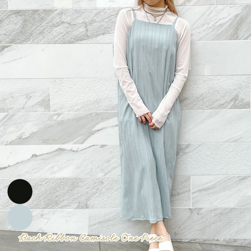 清涼感のある素材でサラッとした肌触りのバックリボンキャミワンピースが登場★バックリボンでウエストが絞れてスッキリ♪シワになりにくい素材感で旅行などにもオススメ◎合わせのアイテムを変えるだけでカジュアルにもキレイ目にも!レイヤードスタイルを楽しめます☆