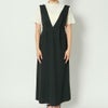 きれい見えするVネックにふんわりフレアシルエットが女性らしいシアーインナー付きジャンパースカートが登場★やや長めの丈感で大人っぽくこなしやすい一枚♪インナーにロゴTシャツなどカジュアルなアイテムでミックス感を出しても◎スタイルの主役になりながら、着回し力の高いアイテムです☆
