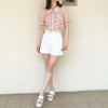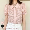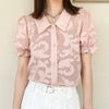 ふんわりと広がるキャンディースリーブが可愛い花柄ジャガードブラウスが登場★透け感のあるシースルー素材に、ジャガードデザインをプラスした表情豊かなアイテム♪さりげなく光るビジューボタンがアクセントに◎スカートに合わせたキレイめコーデにも、デニムを合わせたカジュアルにも合わせられる一着です☆