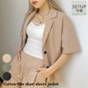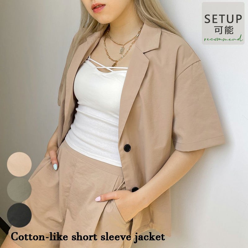 メンズライクな少し長めの半袖が大人っぽい印象のコットンライクジャケットが登場★開襟のデザインで顔周りをすっきりみせてくれる♪セットアップではもちろん、デニムパンツやスキニーパンツなどを合わせるなど単体でもコーディネートが広がる◎ショートパンツ(2323576)とセットアップでもご着用していただけます☆