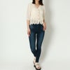 ガーリーで上品なレースのような編み柄が目を惹くかぎ針シフォンカーディガンが登場★インナーにプリントTやデニムなどカジュアルMIXさせて着たり、前を閉じてブラウスとしても使えるのも高ポイントの1枚♪短めの丈感と異素材使いのシフォン袖がシーズンムードを高めてくれます☆