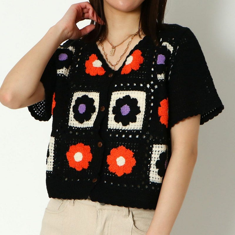 カーディガン トップス 花柄 多色 かぎ針 ショート 春 夏 2323593