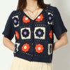 パッチワークと花柄が可愛いかぎ針カーディガンが登場★前後の異なるパターンで表情豊かな仕上がり♪コンパクトな丈×ゆとりのあるスリーブもこなれたポイント◎トップスとしても可愛く着こなせるコーディネートの幅が広がるアイテムです☆