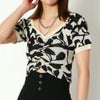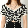 ナチュラルな柄がインパクトのあるジャガードニットが登場★すっきりとしたVネックやショートデザインがバランスの良い1枚♪フロントに寄せたギャザーが、女性らしいやわらかな表情を演出◎デニムと合わせてカジュアルに、スカートと合わせてレディに、幅広いスタイリングにマッチします☆