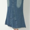 リメイクしたようなデザインのマーメイドスカートが登場★裾のフリンジ&ダメージ加工が抜け感たっぷり♪バックスリット入りで足さばきも◎腰まわりは、ややハイウエストですっきりと女性らしい絶妙なシルエットで、シーズンに合ったインナーをコーデすれば簡単にスタイリングが決まります☆