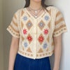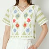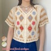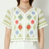 カラフルな花柄刺しゅうのクロシェ編みで大人ガーリーに仕上げたカーディガンが登場★アーガイルやボーダーなどの柄をMIXした華やかな存在感のあるデザイン♪顔周りをすっきり見せてくれるVネックもポイント◎ショート丈でスタイルアップ効果も期待でき、シンプルなワンピースと合わせたりとコーディネートのアクセント使いにも活躍してくれるアイテムです☆