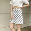 コーデを華やかに演出してくれるロゴ柄のスカパンが登場★絶妙な丈感とすっきりとした台形シルエットで美脚&スタイルアップが叶うアイテム♪ショート丈のTシャツやカットソーコーデで韓国っぽく仕上げるのも◎パッと見はスカートながら内側の裏地がパンツタイプになっており、安心してはけるのが嬉しいポイントです☆