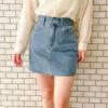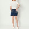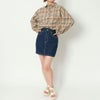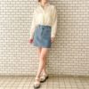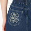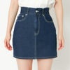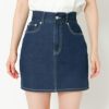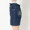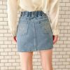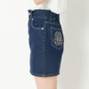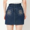 ワンポイントのポケット刺繍が可愛いデニムミニスカートの登場★シーズンライクなマストアイテム、短丈トップスと相性ぴったり♪ポケットのロゴがトレンド感のあるアイテム◎コンパクトな台形シルエットと短めの丈感でお尻周りや太ももをすっきりスタイル良く見せてくれます☆