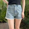 ダメージフリンジ加工を施したデニムショートパンツが登場★着心地も抜群でシーズンを問わず長く履けるのも魅力♪シンプルなデザインで、様々なテイストのスタイリングと合わせられるのでトップス選びが楽しくなるアイテム◎ビッグシルエットのロンTなどルーズに合わせたカジュアルスタイルは勿論、トレンドのシアートップスで女の子らしさをプラスしたりと一枚は持っておきたいアイテムです☆