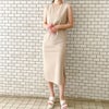 カジュアル見えしがちなカットジョーゼット素材を美シルエットで上品に仕上げたノースリワンピースが登場★シンプルなIラインシルエットが、スラっとキレイな印象に♪程よい厚みで身体のラインを拾い過ぎず、ストレスフリーな着心地も魅力◎一枚ではもちろん、シャツやカーデを羽織ったスタイリングがおすすめです☆