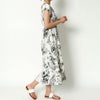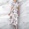 スケッチのようなレトロな雰囲気の花柄が可愛いフレンチスリーブワンピースが登場★胸元がV字に開いたオープンカラータイプなので、デコルテもすっきり♪ウエストゴムでストレスフリーな着心地◎サンダルやパンプス合わせのきれいめスタイルはもちろん、スニーカーでカジュアルダウンさせるのもオススメです☆