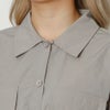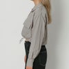 いつものスタイルに羽織るだけでサマになる今季トレンドのシアーシャツが登場★ほどよい光沢感のあるキレイめなシアー素材で適度な肌見せを演出♪裾はドローストリング仕様でお好みの絞り具合でフォルム調節可能◎短丈シルエットなので、ハイウエストのボトムスやワンピースに取り入れるとスタイルアップが叶います☆