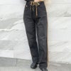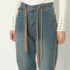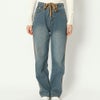 ウェストの2種リボンがアクセントになったデニムパンツは