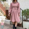 ウェストのベルトでメリハリのあるスタイルに