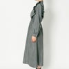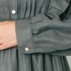 ふんわり広がるAラインシルエットとパフ袖にパール調ボタンが可愛らしさをプラス。