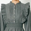 レトロな雰囲気漂うシーズンライクな素材のフリルワンピース。