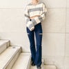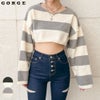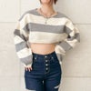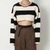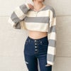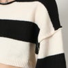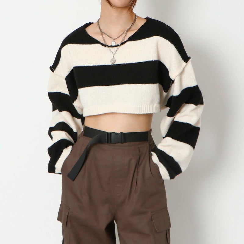 存在感のあるワイドボーダーデザインが目を惹くクロップドボーダーニットが登場★大胆な配色とコンパクトな見頃がスタイリッシュな一枚♪長めの袖丈とクロップド丈の絶妙なバランスでスタイルアップ◎ハイウエストのボトムスと相性抜群でワイドデニムやカーゴパンツと合わせたストリートスタイル、ミニ丈のボトムス+ロングブーツと合わせた韓国コーデもオススメです☆