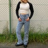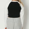 配色のラグランデザインがアクセントとなった、1枚で決まるクロップド丈のロンTが登場★フロントにあしらったラインストーンのロゴがレディなアクセントを添えるアイテム♪コンパクトなサイズ感で女性らしいシルエット◎デニムはもちろん、カーゴパンツやショートパンツとの相性がよくストリートからカジュアルまで幅広く着ていただけます☆