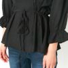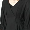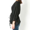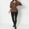 ふんわりと広がるペプラム風シルエットが、腰まわりをさりげなくカバーしつつ、メリハリのあるスタイルを演出します。