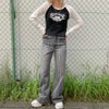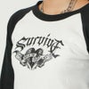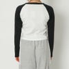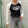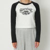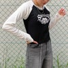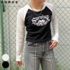 ハートとロゴのデザインがY2KファッションにハマりやすいラグランTシャツに長袖が登場★クロップド丈のラグランがストリートスタイルにピッタリなアイテム♪ピッタリとタイトなシルエットなのでゆったりしたボトムと合わせるとスタイルアップ効果抜群◎トレンドのカーゴパンツと合わせたりミニスカート合わせがオススメです☆