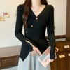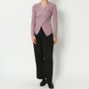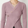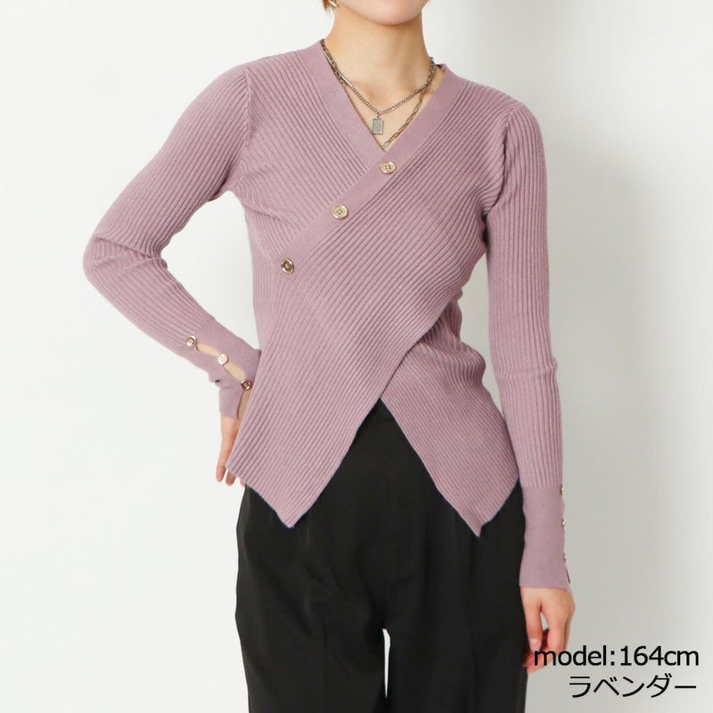 ボタンを斜めにあしらったデザイン性のあるニット。