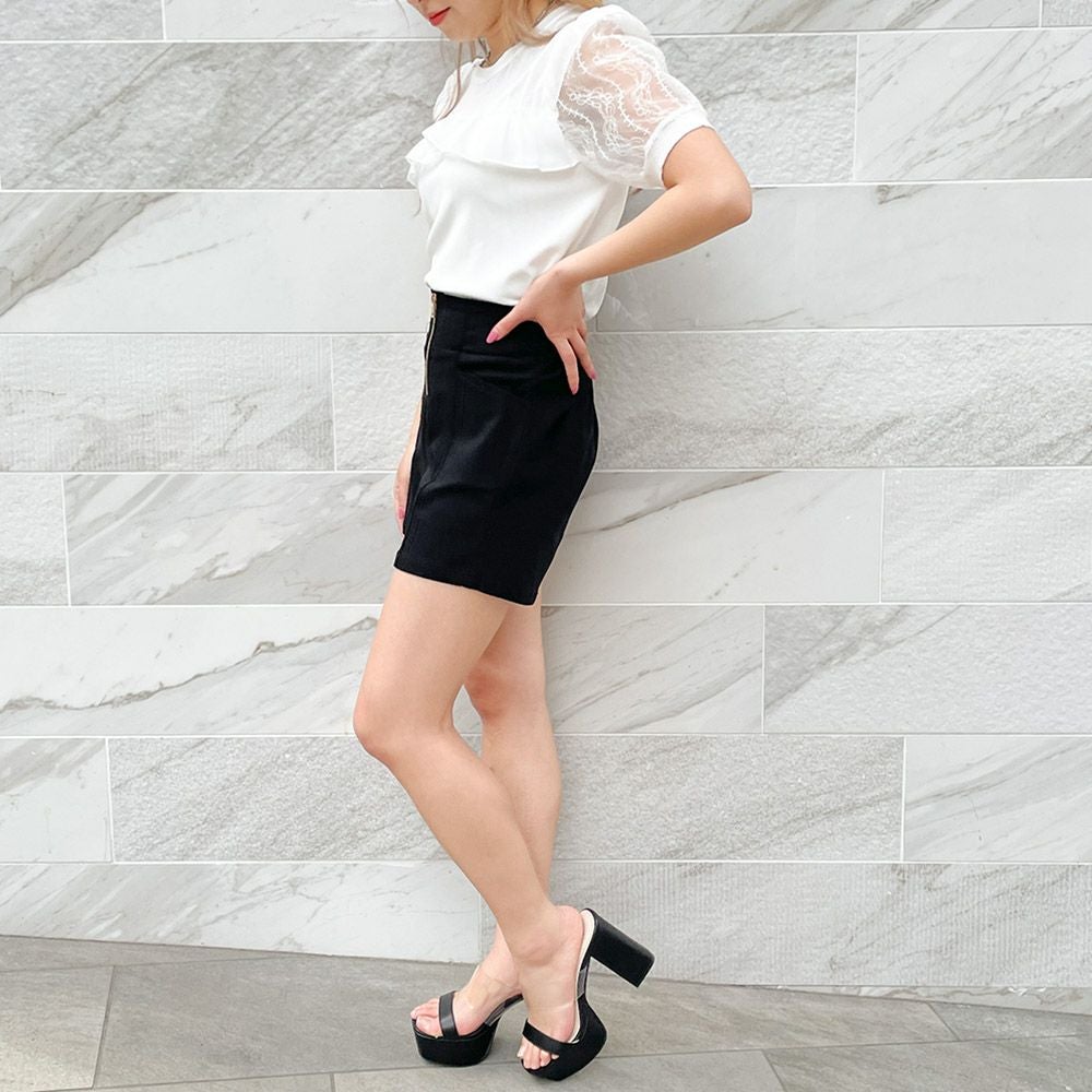 サテンレースプリーツスカート