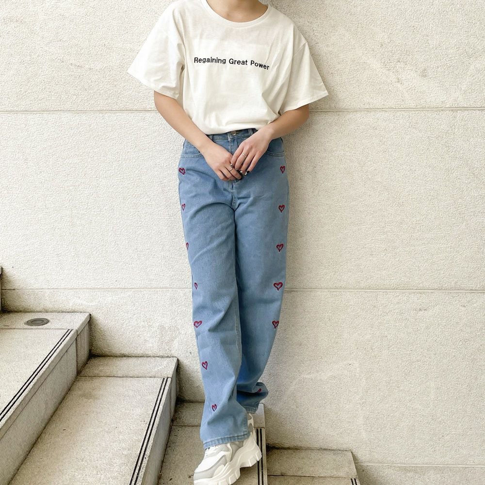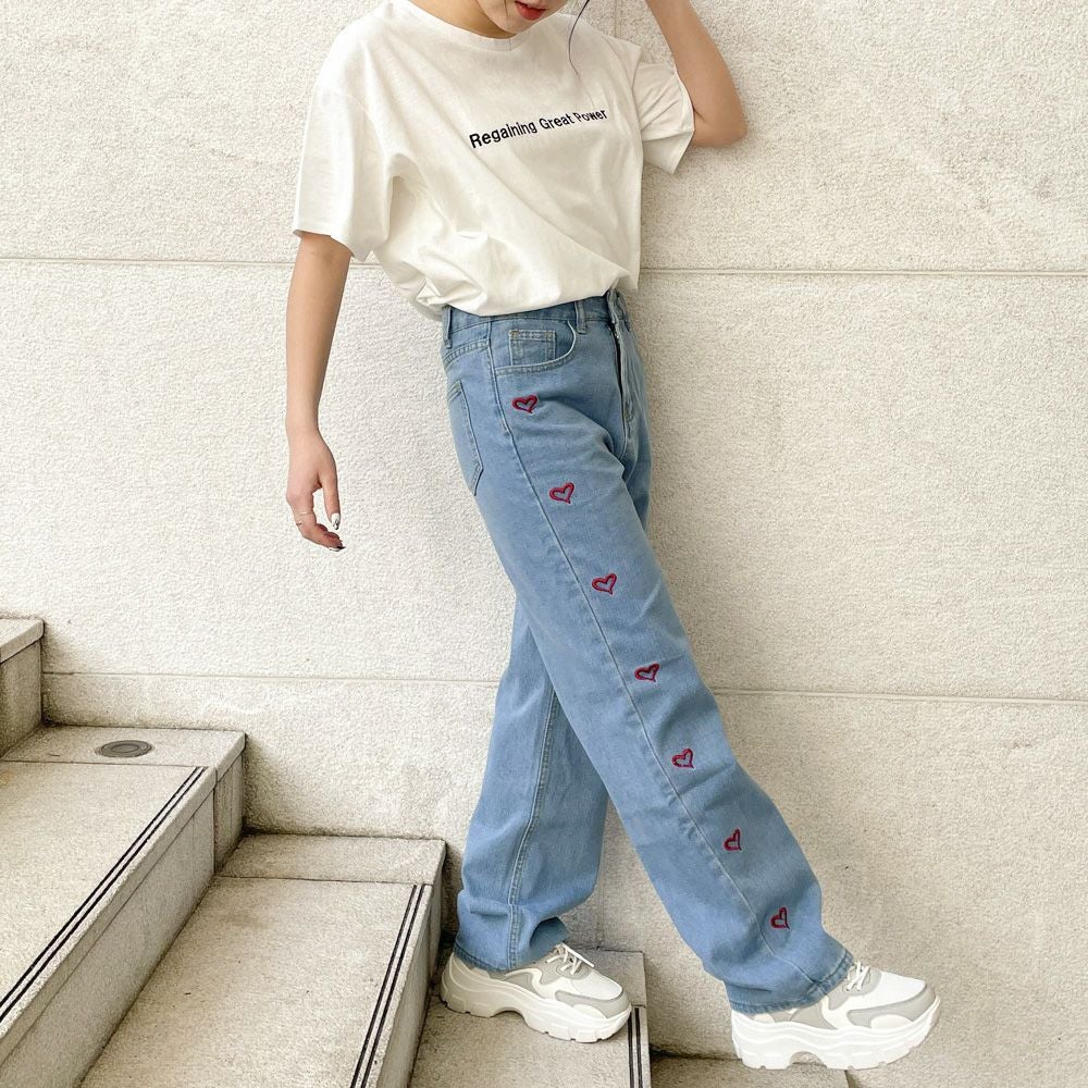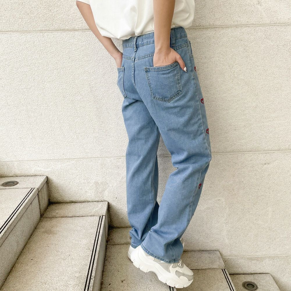 他の画像を見る 《ハート刺しゅう×ストレート》レディース デニムパンツ ゆるシルエット カジュアル 春夏秋 2BUY10%OFF 通常価格 ¥ 5,489 のところ 販売価格 ¥ 2,744 税込 カートに入れる お気に入りに登録する