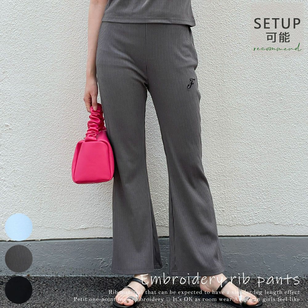 刺しゅうリブパンツ