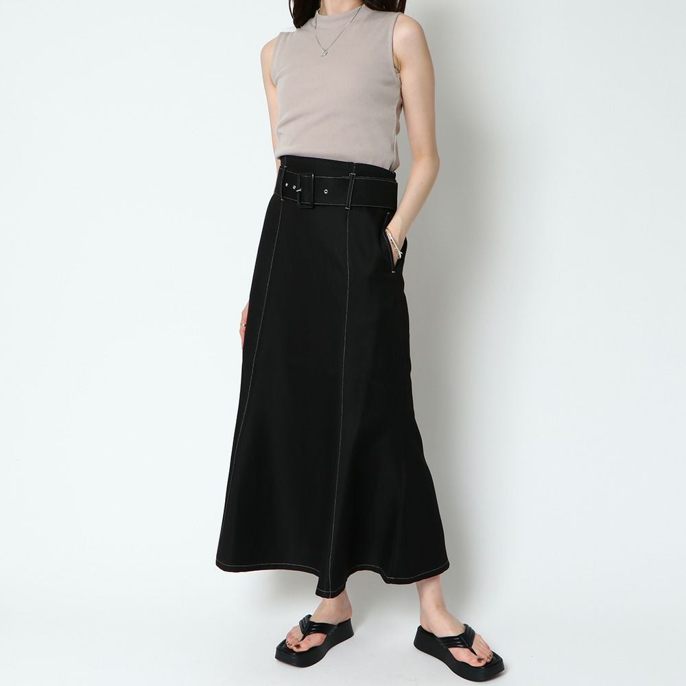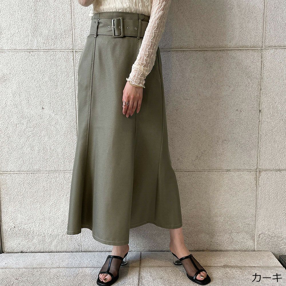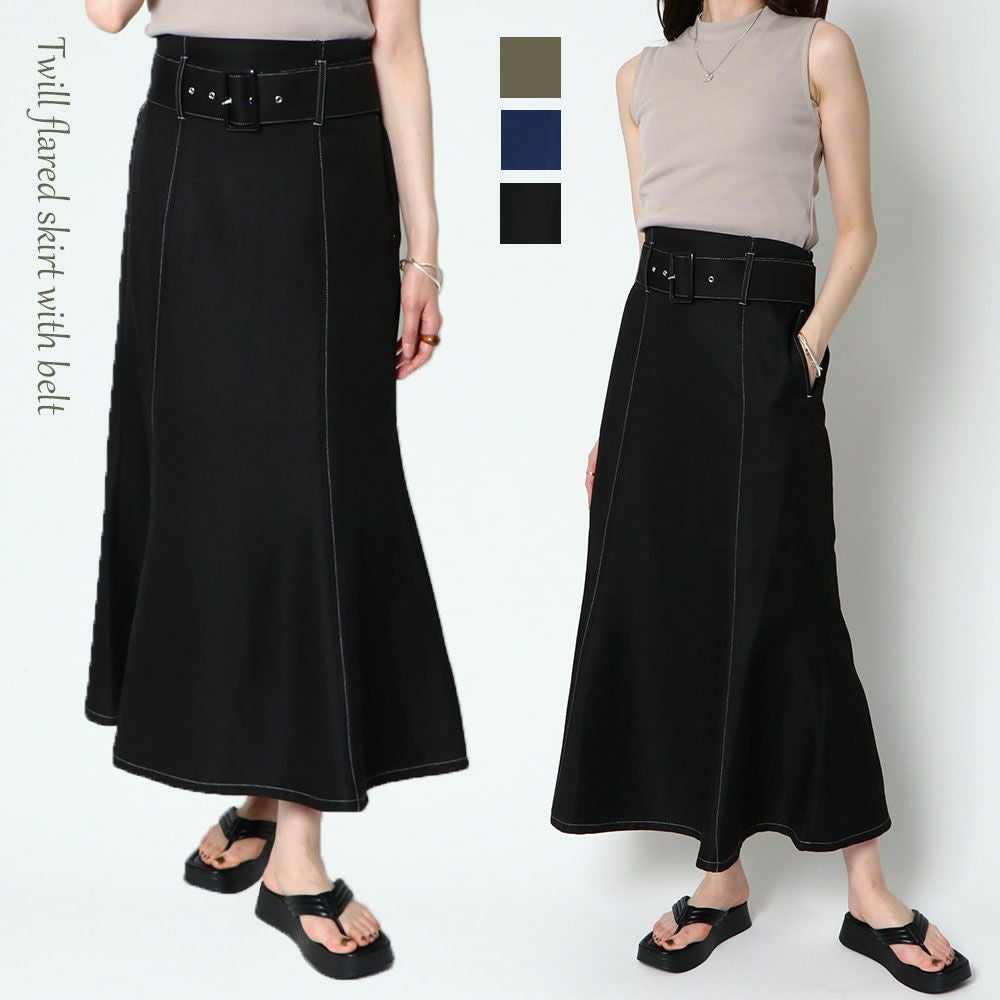 ベルト付きツイルフレアスカート