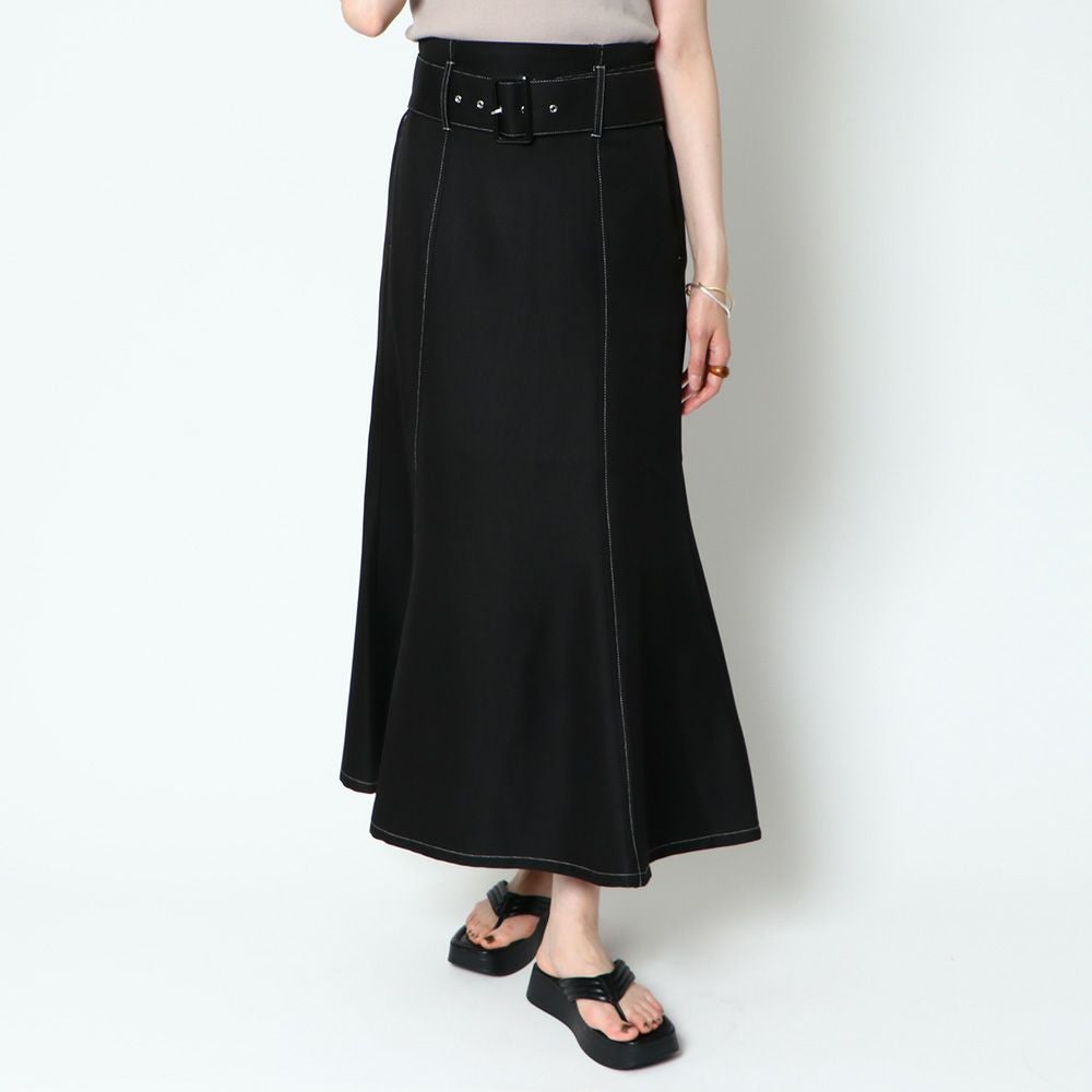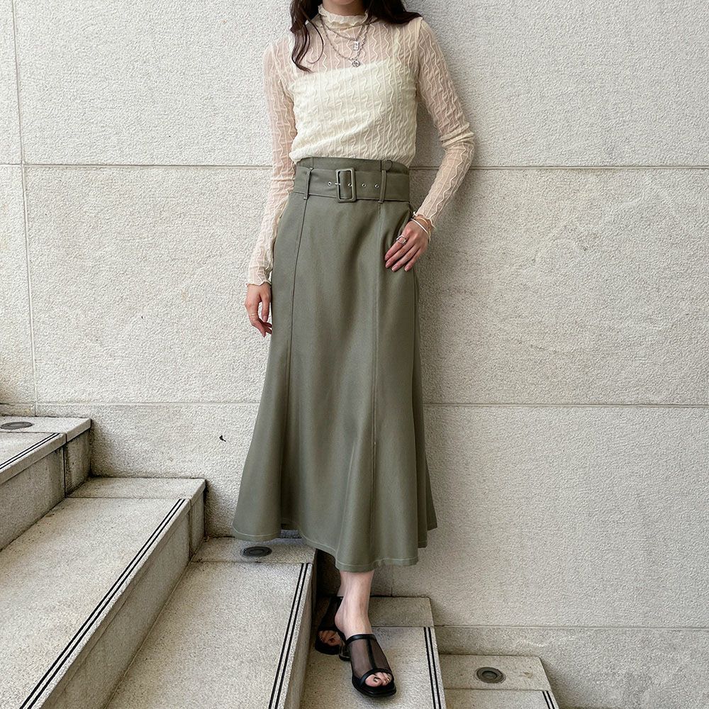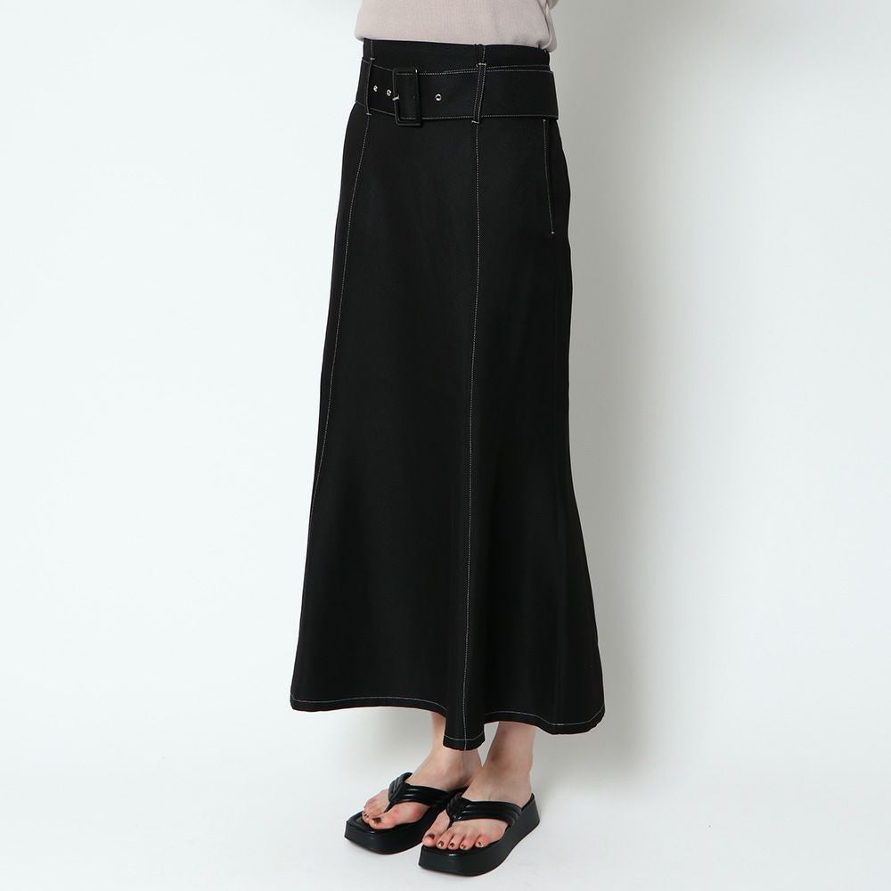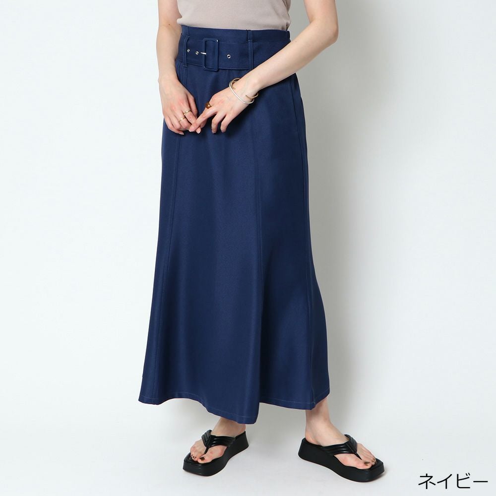 ベルト付きツイルフレアスカート