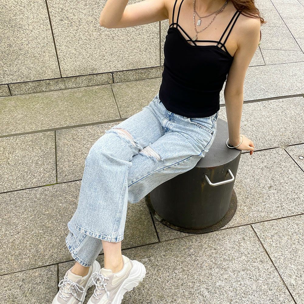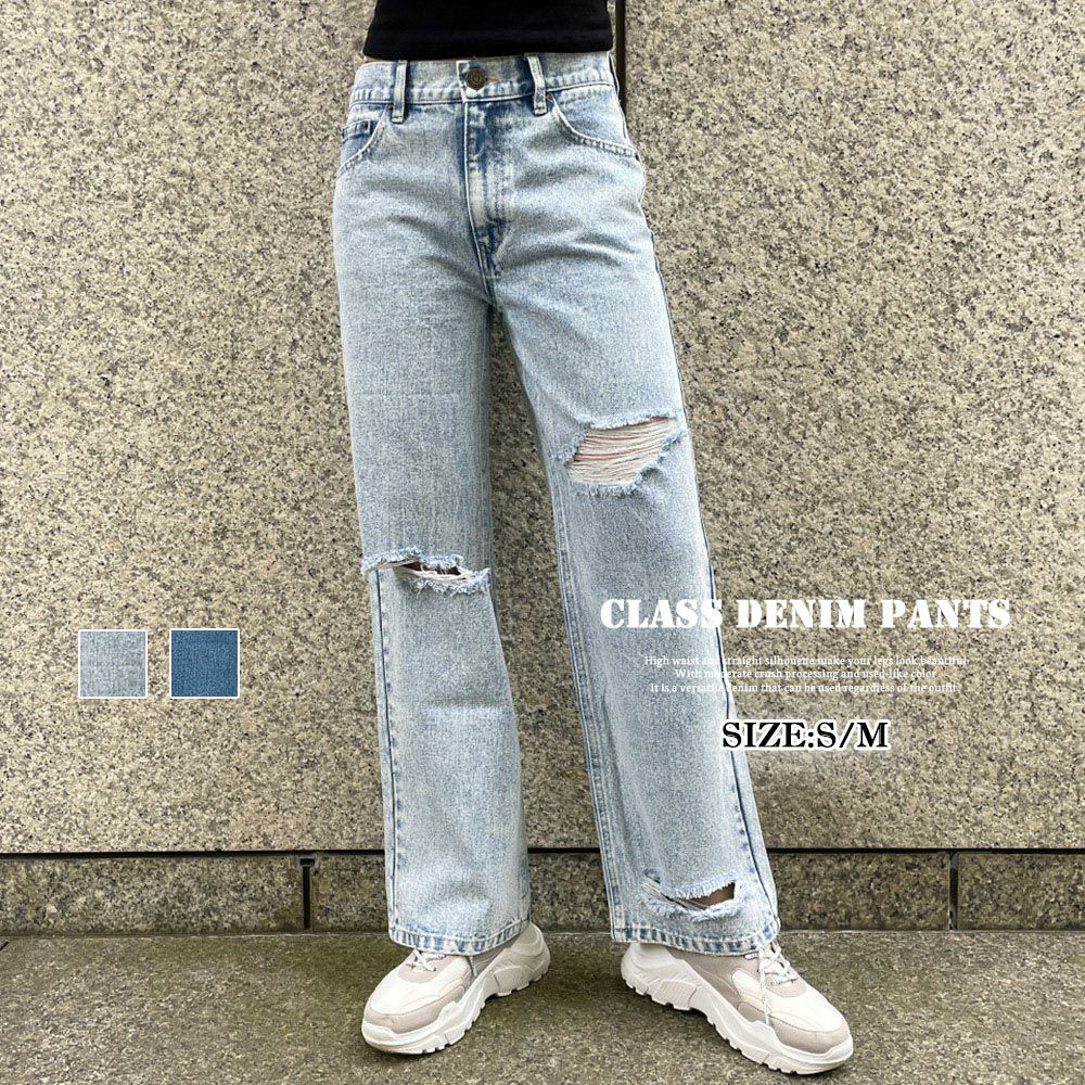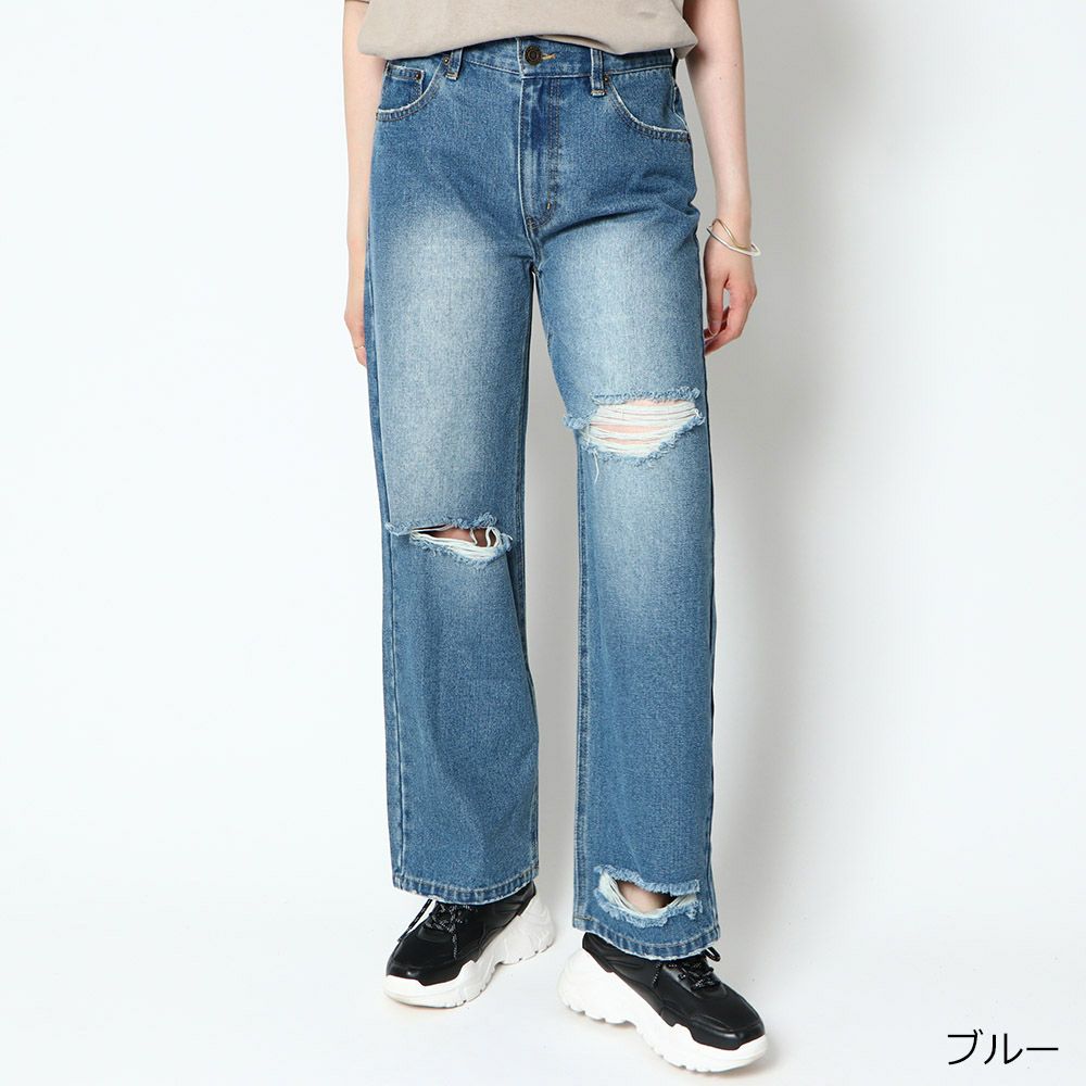 クラッシュデニムパンツ