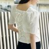 肩ギャザーが大人っぽくデコルテラインが美しく見せられるレースアップテレコトップスが登場★