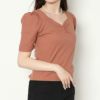リブ素材でスッキリした見映え&伸縮性バツグン◎バストのラインに合わせた可愛らしいデザイン♪全体的に大人なルックスなのでスカートで合わせるとより女性らしさがプラスされます☆サイズ:F本体:着丈45cmバスト78cm袖丈29cm肩幅31cm裾幅40cm