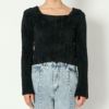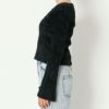 季節感と華やかさをプラスするフェザーニットで仕上げたプルオーバーが登場★フレアデザインのスリーブで手首を華奢に女性らしく演出♪大胆なスクエアネックで、色香漂う一枚に◎洗練されたショート丈はハイウエストボトムと相性が良く、腰の位置を高く見せてスタイルアップしてくれます☆