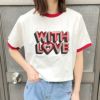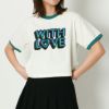 フロントのカラーロゴ刺繍がポイントのリンガー刺しゅうTシャツが登場★首元と袖口にパイピングカラーを効かせたリンガーデザイン◎程よくゆとりのあるシルエットが身体のラインを拾わないのも嬉しいポイント♪インもアウトも様になる丈感&シルエットで様々なコーディネートに☆