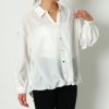フロントに並んだビジュライクなボタンが目を惹くバックレースアップブラウスが登場★共布のリボンで統一感を出して甘さを抑えたデザインなので前を開けて羽織としても活躍♪絶妙なゆったりシルエットで今年らしい印象に☆