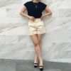 女性らしいシルエットを演出するショートパンツが登場★ヘルシーな肌魅せスタイルにぴったりなボトムス♪2タックでウェストまわりがすっきりと見えるしたシンプルなデザインに、ひざ上丈が動きやすくスリムに見える◎トップスインをしたスタイリングがオススメです☆